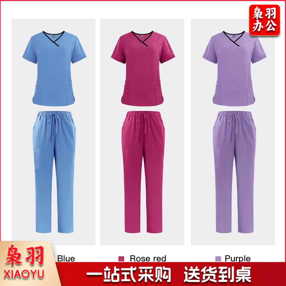 出口洗手衣分体套装短袖刷手衣女牙科诊所医 生工作服医护制服