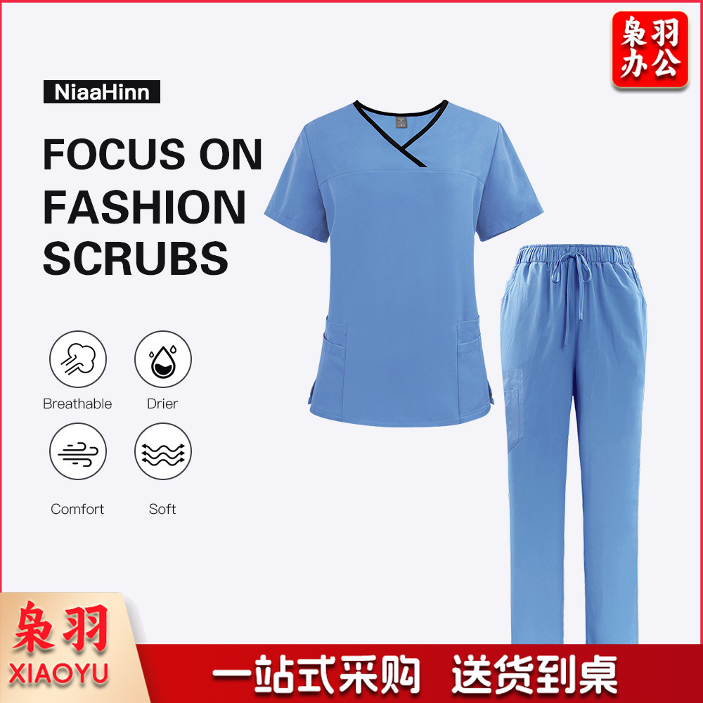 出口洗手衣分体套装短袖刷手衣女牙科诊所医 生工作服医护制服