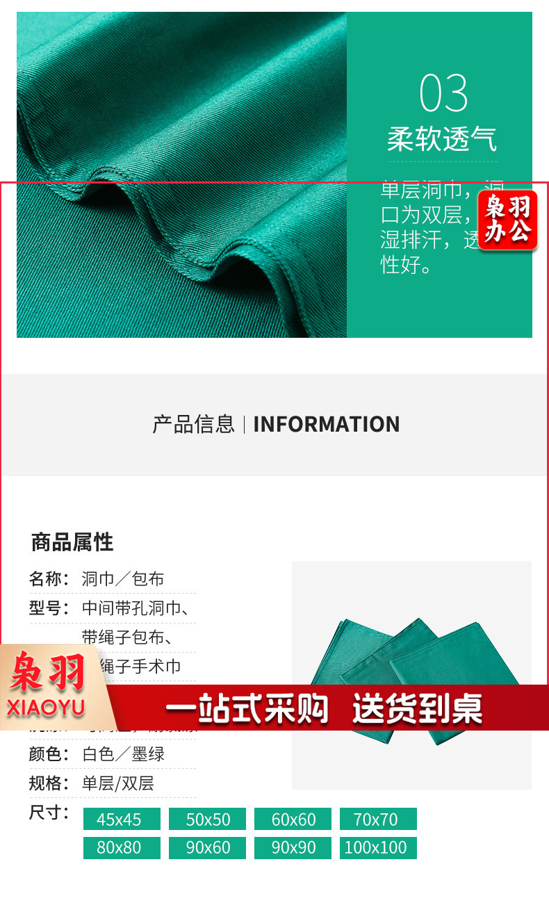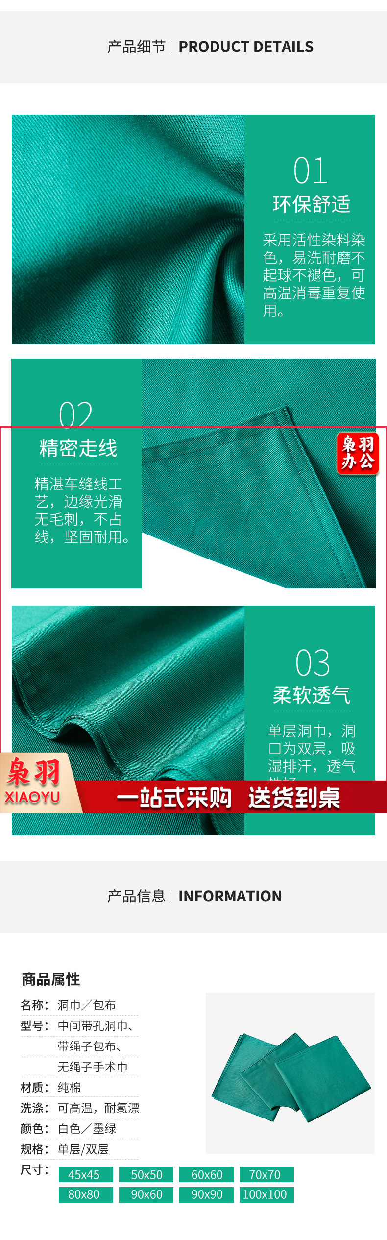 纯棉手术室包布洞巾(60*60单层)中单双层治疗巾孔巾铺巾口腔美容院医 院剖腹单