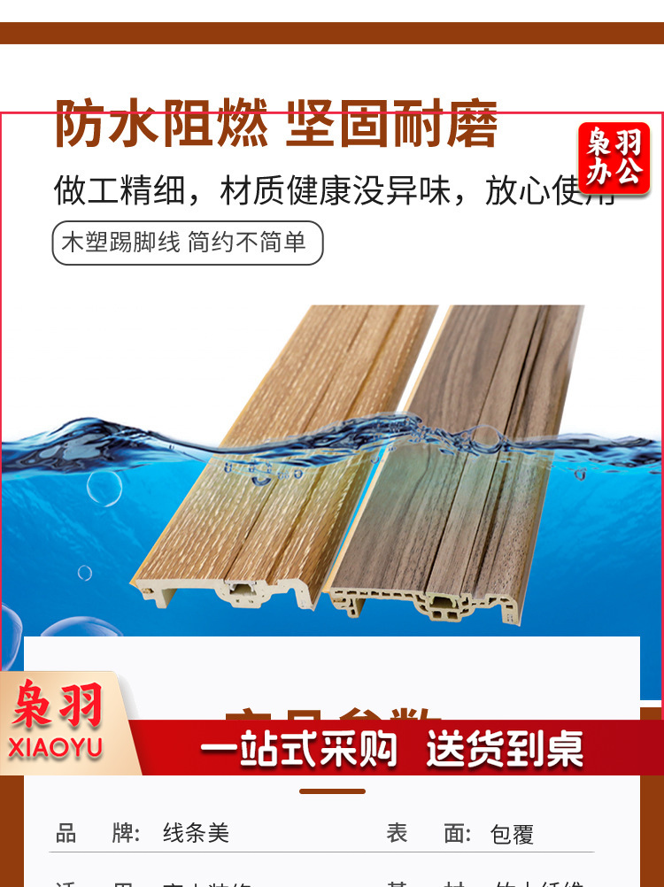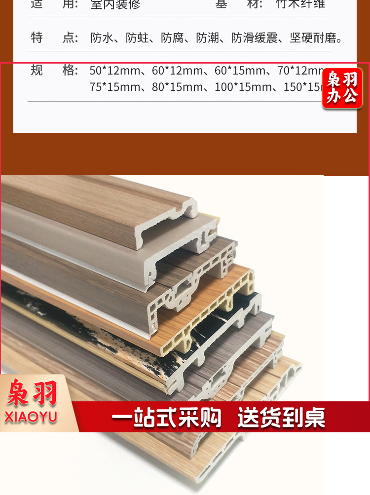 8CM踢脚线木地板收边条竹木纤维防潮pvc踢脚线