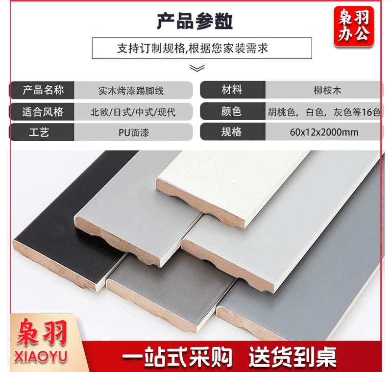 实木踢脚线墙角线工程装修用贴脚线现代简约黑白色北欧地脚线