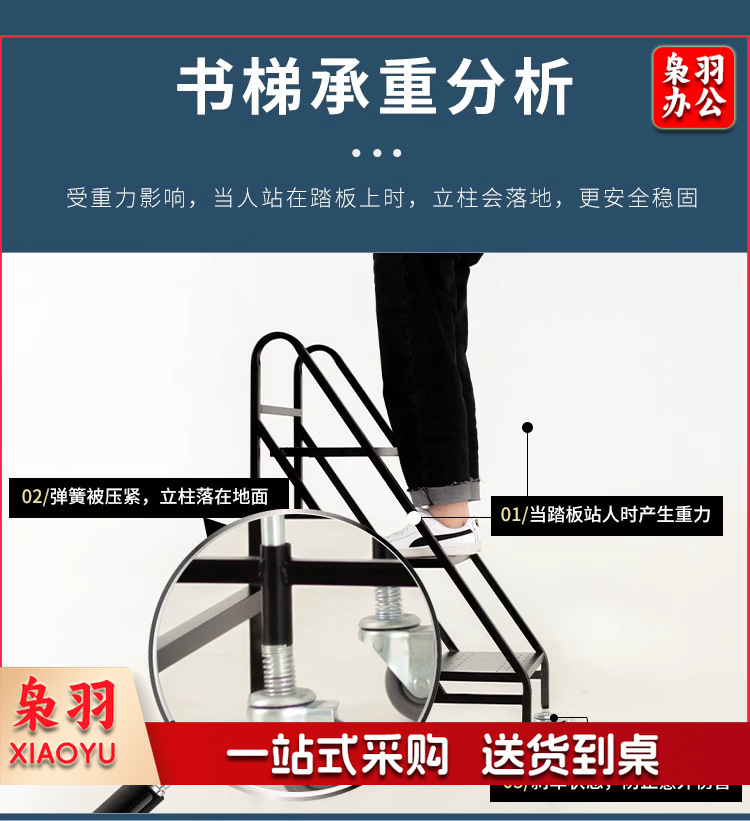 图书馆静音书车手推车( 2层平板书车)二层三层移动钢制书车三步登高梯
