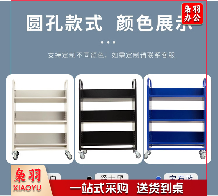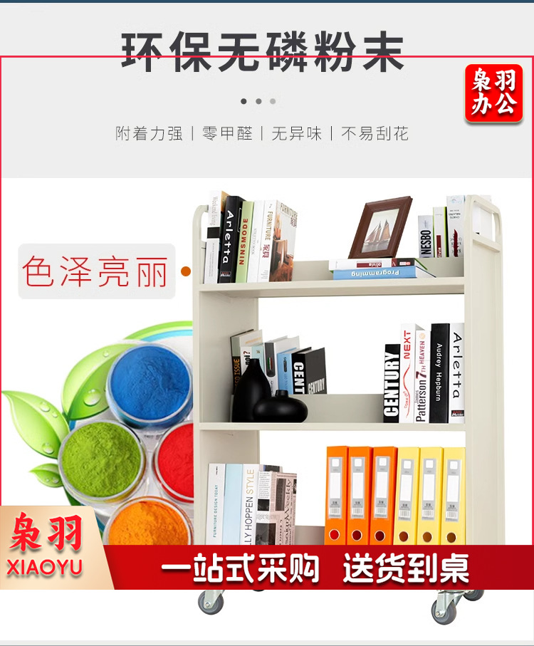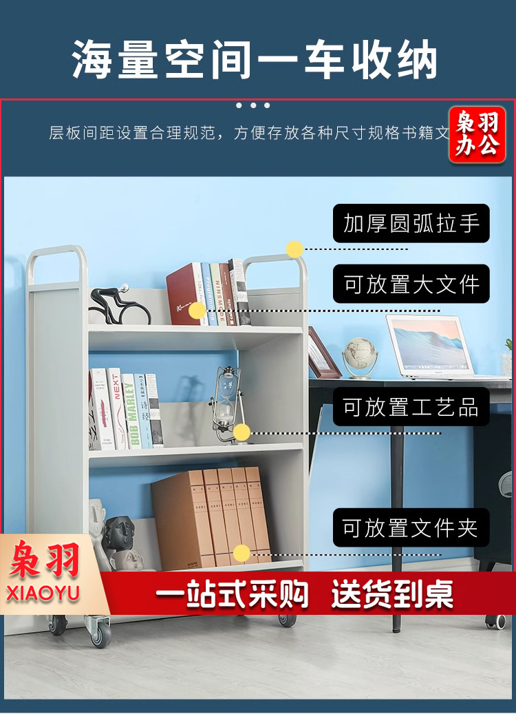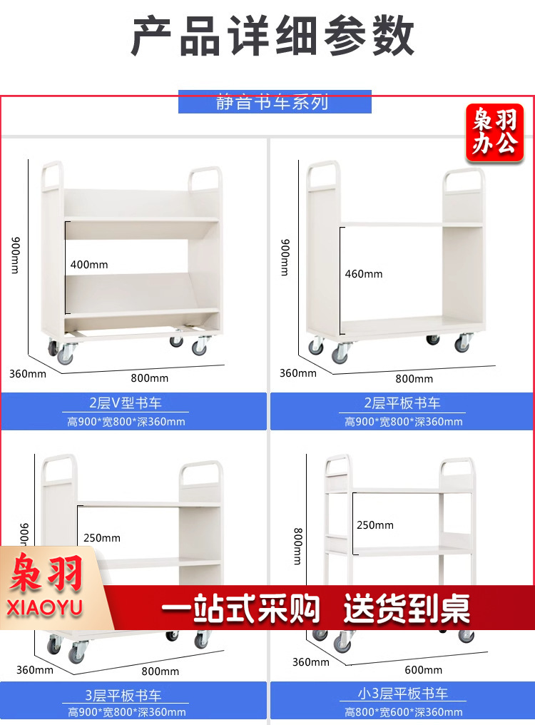 图书馆静音书车手推车(3层平板书车)二层三层移动钢制书车三步登高梯