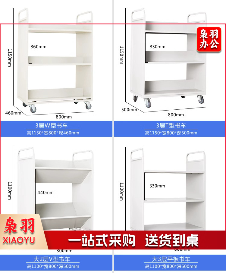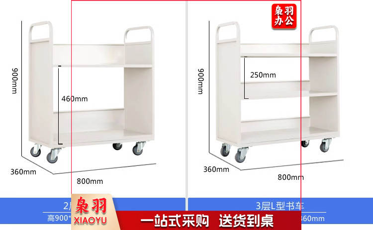 图书馆静音书车手推车(2层护边书车)二层三层移动钢制书车三步登高梯