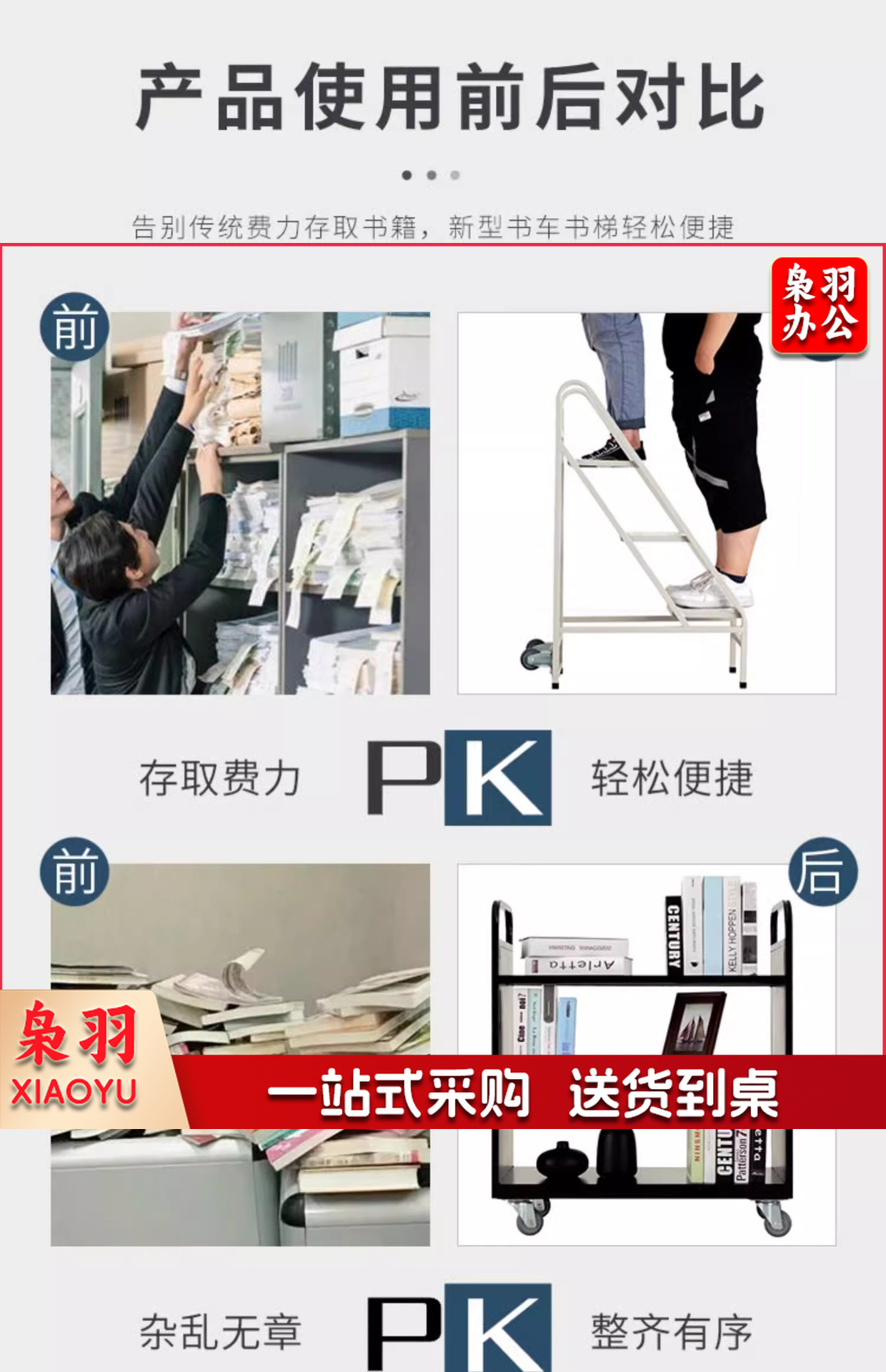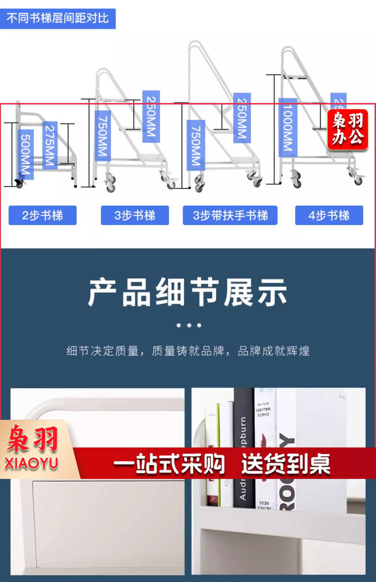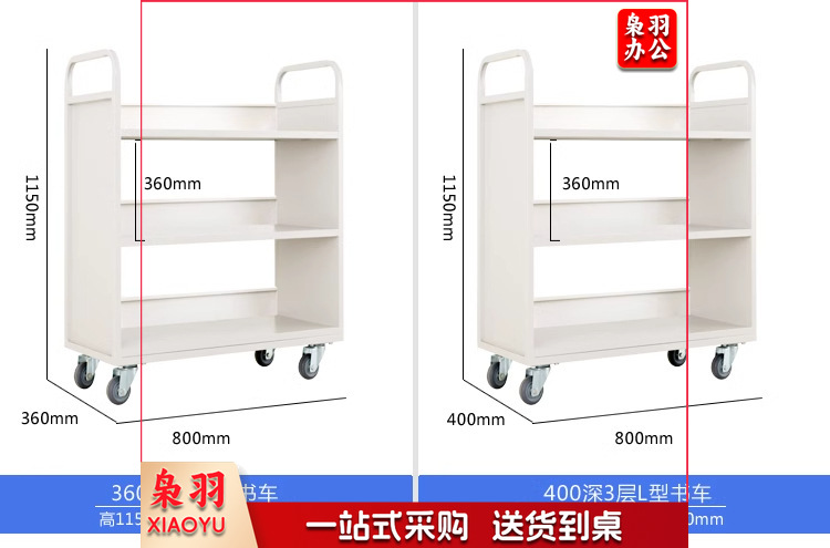 图书馆静音书车手推车(三步书梯)二层三层移动钢制书车三步登高梯