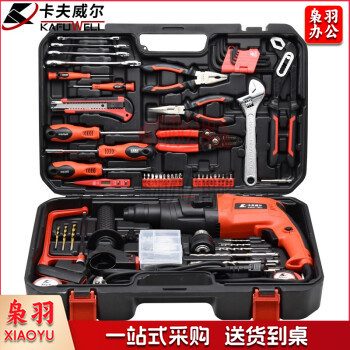 卡夫威尔 120件套电锤家用工具箱套装 轻型电锤套装500W大功率 水泥墙打孔安装维修家具 H3709A