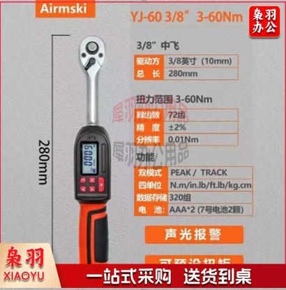 高精度数显扭矩扳手YJ603-60N中飞 棘轮头