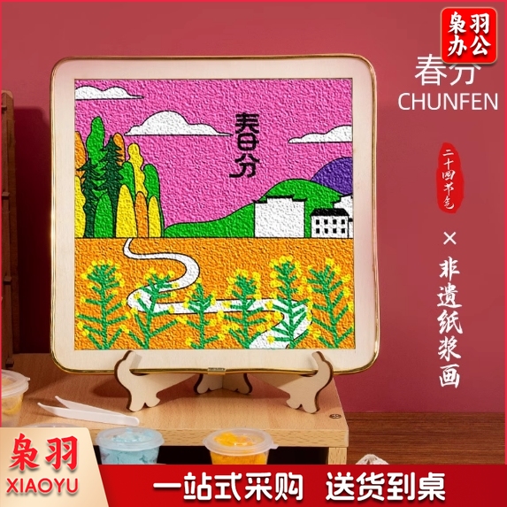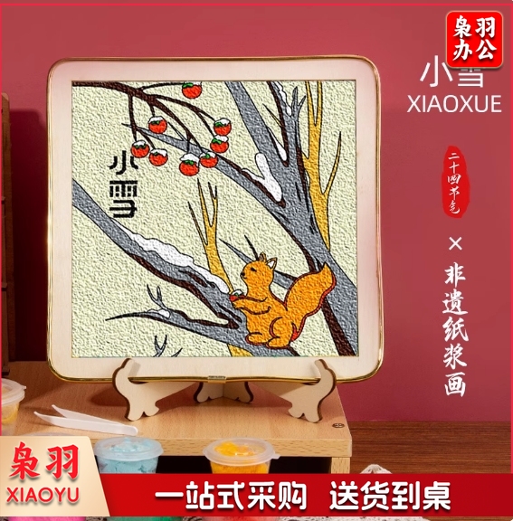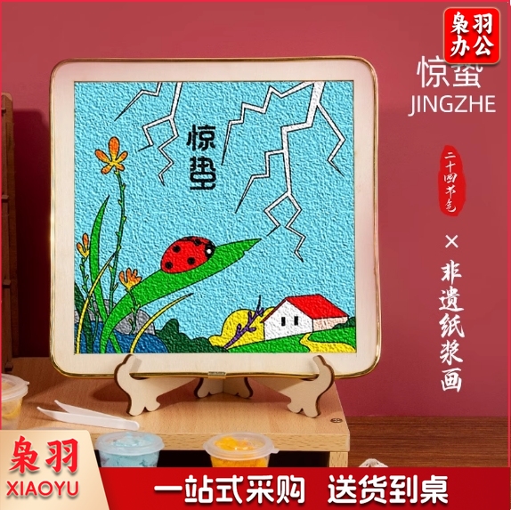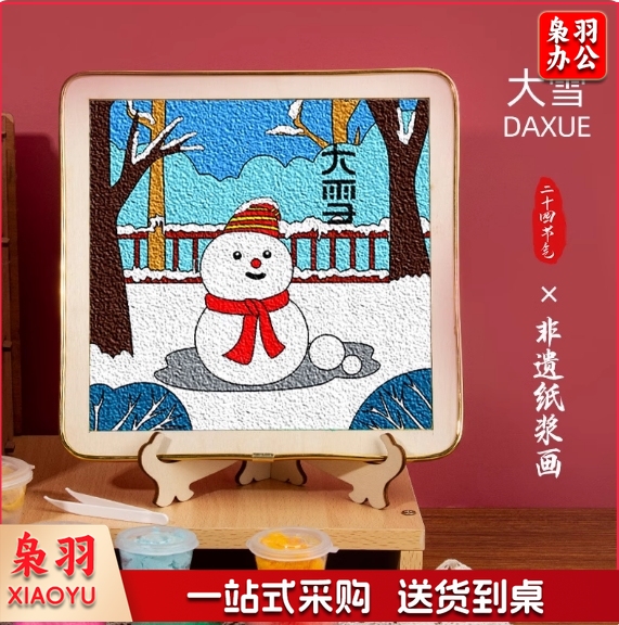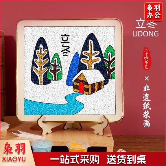 节气纸浆画材料包 立春、惊蛰、春分、立冬、小雪、大雪、冬至各5个共35个