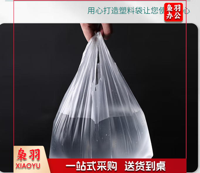 塑料袋 白色透明一次性100只装加厚 20*30cm双面1.8丝 外卖打包手提背心式垃圾袋