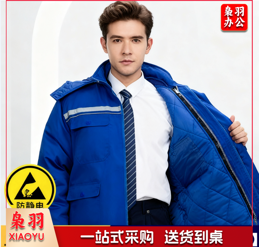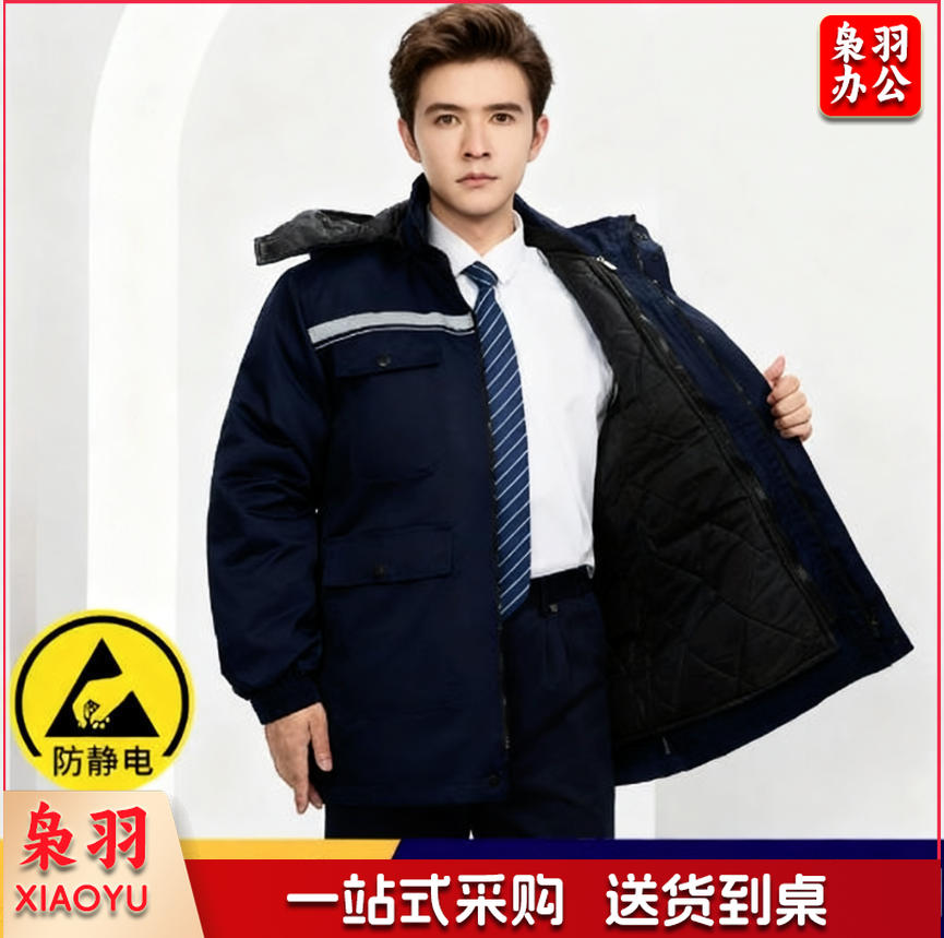 冬季防静电工作服棉衣男加绒保暖化工厂棉服可拆卸劳保服套装棉袄