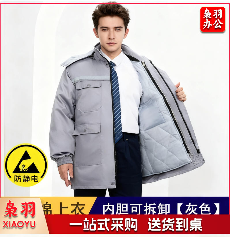 冬季防静电工作服棉衣男加绒保暖化工厂棉服可拆卸劳保服套装棉袄