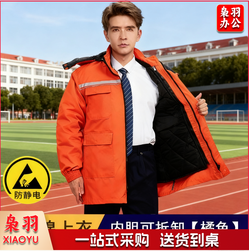 冬季防静电工作服棉衣男加绒保暖化工厂棉服可拆卸劳保服套装棉袄