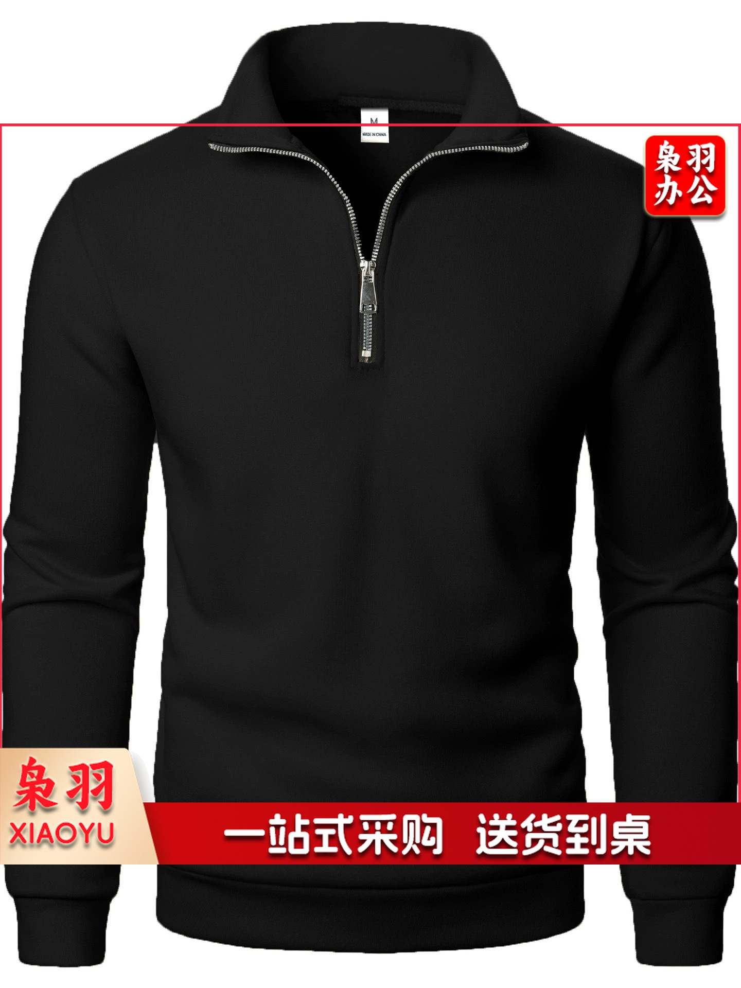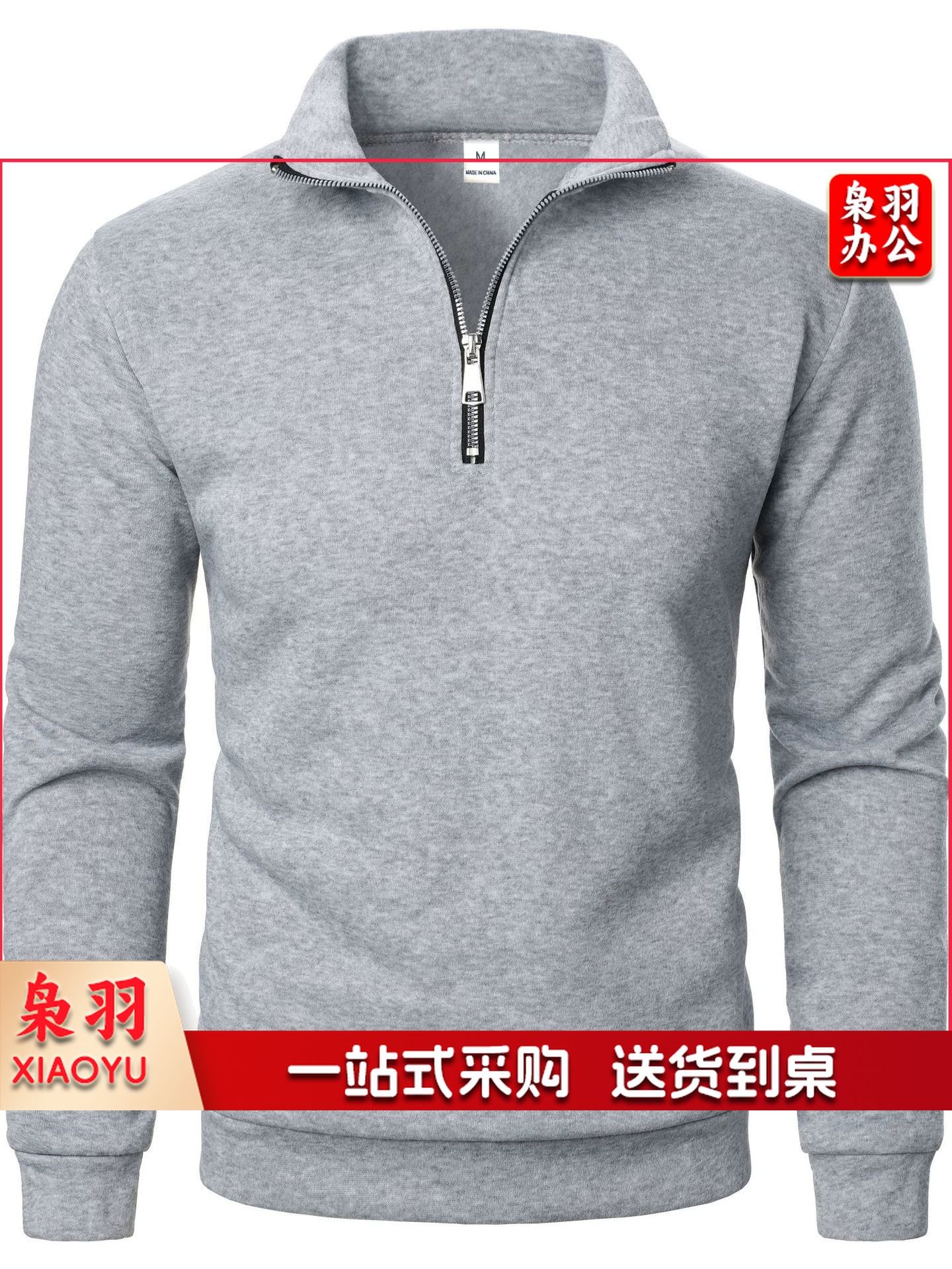 拉链衫polo领重磅加绒卫衣秋冬款休闲运动宽松半拉链外套男女