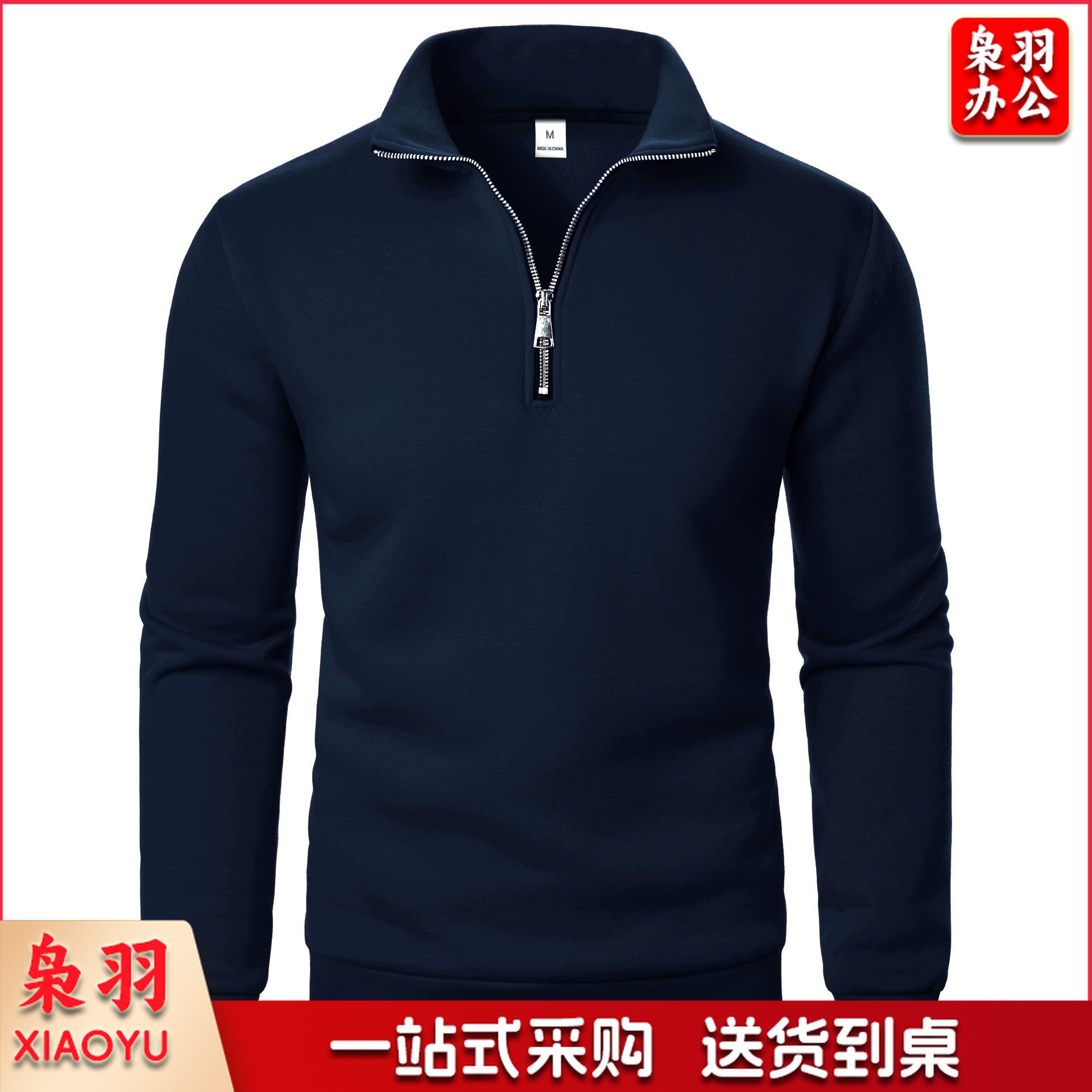 拉链衫polo领重磅加绒卫衣秋冬款休闲运动宽松半拉链外套男女