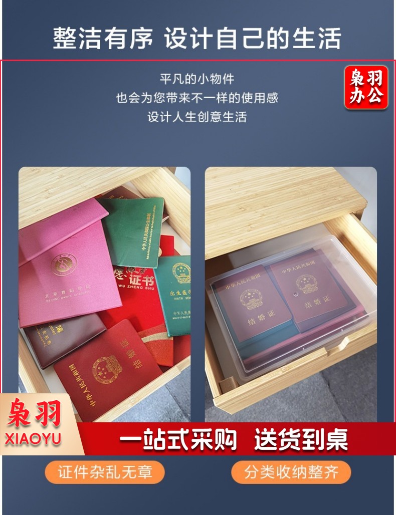 证件盒 A 4纸收纳盒家用透明文件证件储 物办公室桌面放打印纸资料整理盒