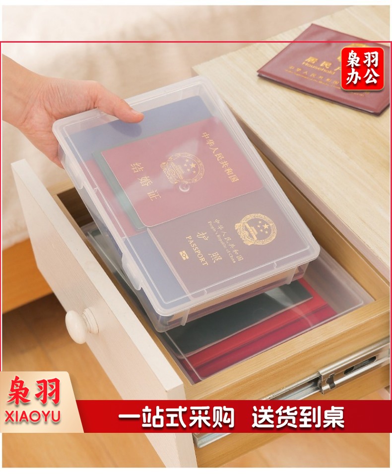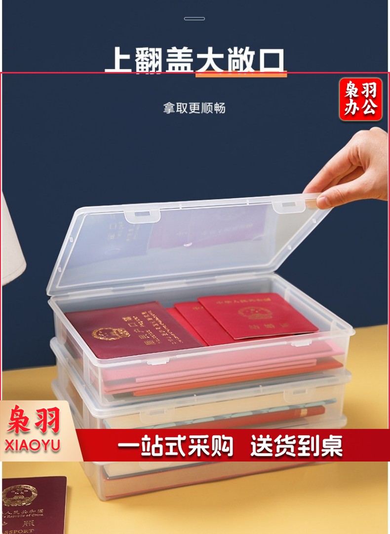 证件盒 A 4纸收纳盒家用透明文件证件储 物办公室桌面放打印纸资料整理盒