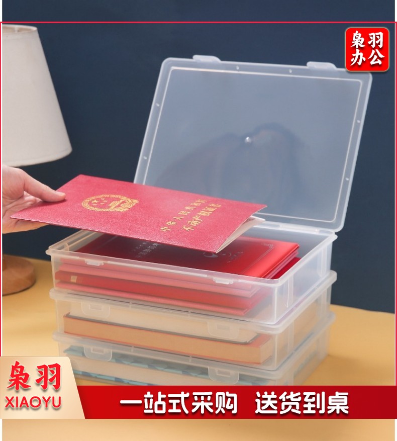 证件盒 A 4纸收纳盒家用透明文件证件储 物办公室桌面放打印纸资料整理盒