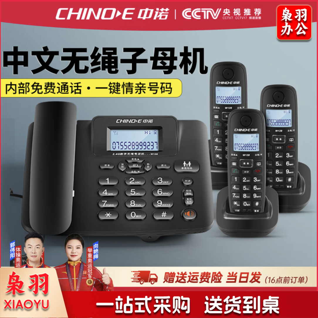 中诺 W128 一拖一三 无绳子母电话机 黑色