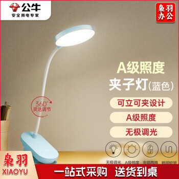 公牛(BULL)A级照度ML-D005C-DS充插两用无极调光宿舍LED夹子台灯蓝色4000K