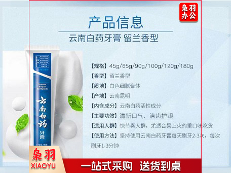 云南白药牙膏 清新口气 健齿护龈 留兰香型100g