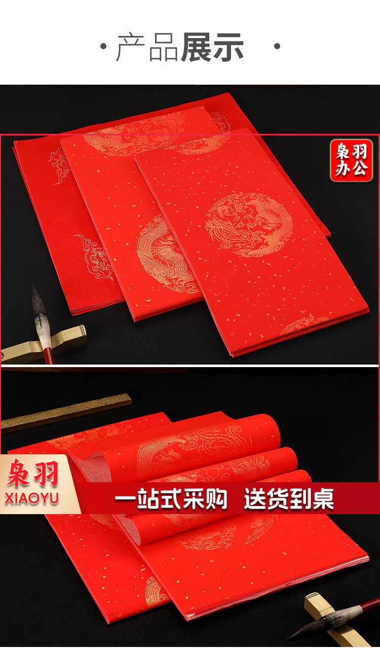 万年红年春节对联龙年手写大门春联宣纸洒金对联纸年货(四尺三开五言(5对))