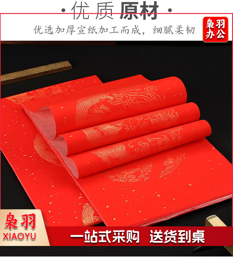 万年红年春节对联龙年手写大门春联宣纸洒金对联纸年货(六尺三开九言(5对))
