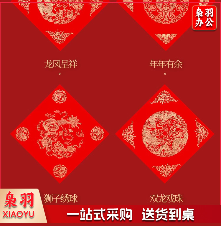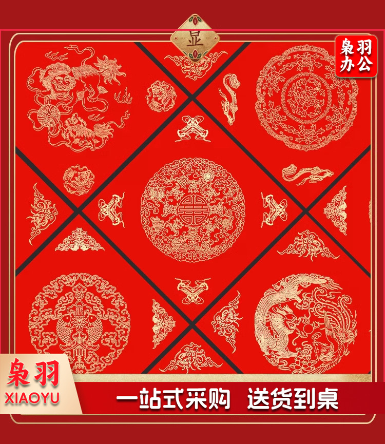 万年红福字加厚春联纸斗方对联纸空白红纸手写的宣纸批发洒金门贴(五福临门34*34cm*20张/包)