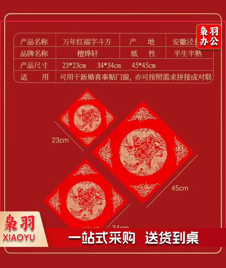 万年红福字加厚春联纸斗方对联纸空白红纸手写的宣纸批发洒金门贴(纯红素面 20张/包 45*45cm*20张/包)