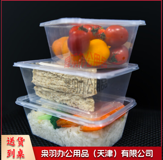 一次性饭盒餐盒 长方形透明塑料快餐盒50只装1000ml