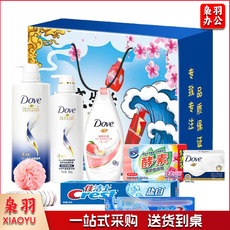 多芬多芬洗发水护发素组合400g+380g沐浴露牙膏刷洗衣皂礼盒9件装