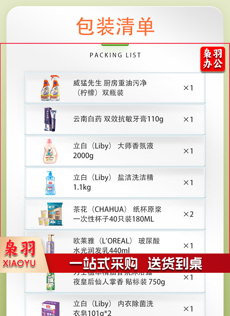 立白 悦享生活礼包A(油污净*2+牙膏110g+立白大师香氛、洗洁精1.1kg、洗衣皂+茶花纸杯+欧莱雅润发乳+力士沐浴露+奇强面巾纸+蓝月亮洗衣液)