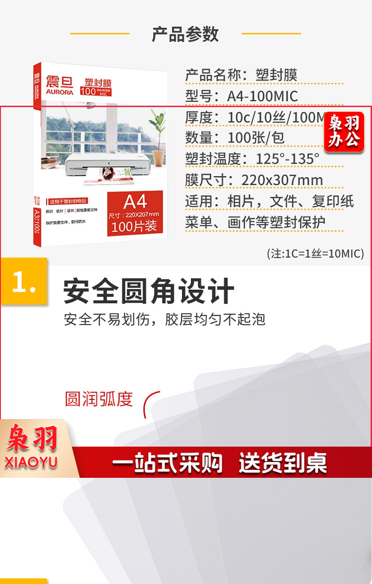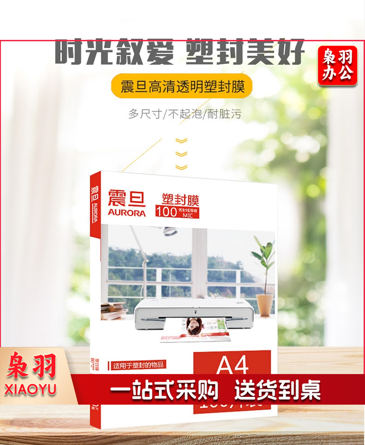 震旦 AURORA A4-100MIC透明高清专用 塑封膜220x307mm 100张/包 透明色(单位:包)