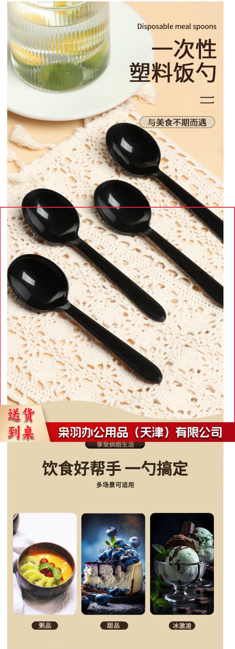 一次性勺子 汤勺 黑色塑料饭勺 外卖勺 货号:JC