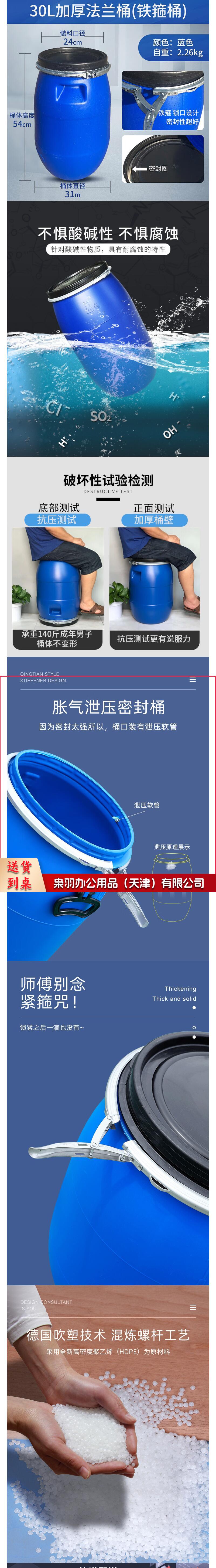 30升加厚法兰桶 塑料铁箍密封桶 货号:JC45