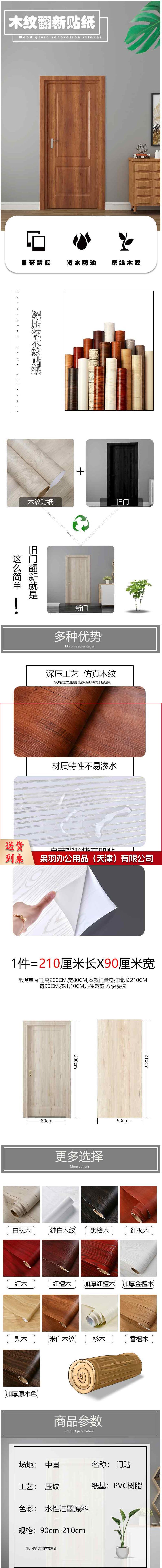 家具木门贴纸 自粘加厚房门防水包边贴纸 白木纹 90*210cm 货号:HXE