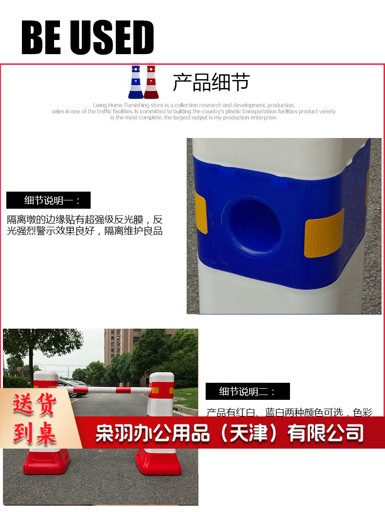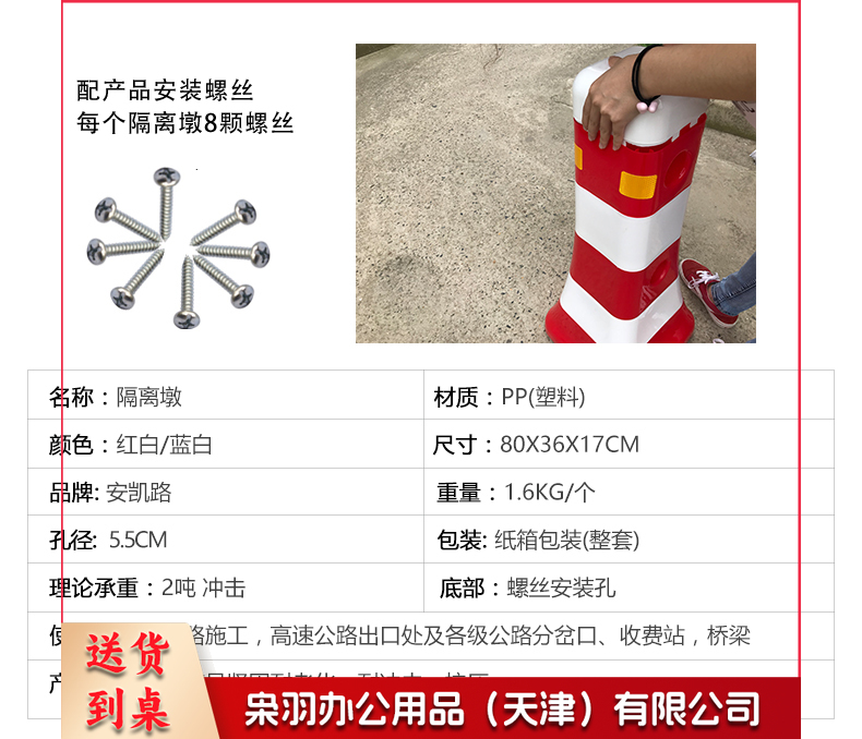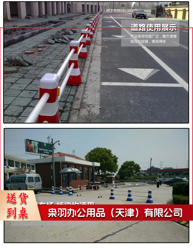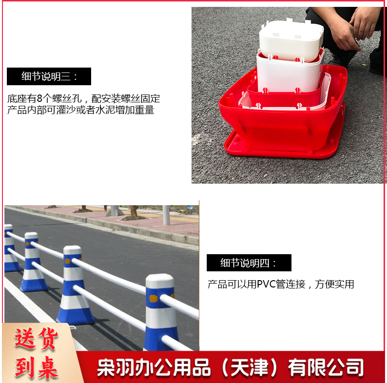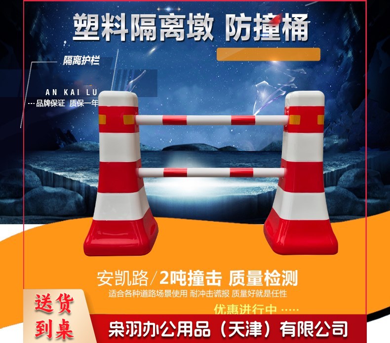 交通设施 分流水马 隔离墩 防撞桶 塑料围栏 道路护栏 一套(2个路墩,2个2米杆架)