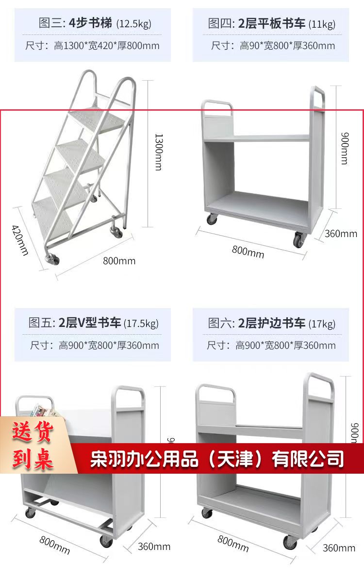 图书馆书车档案室专用二层平板三层V型W型移动手推车两步三步 书梯 登高梯(二层书梯白色)规格齐全 团购或购买其它型号请咨询客服五金附件