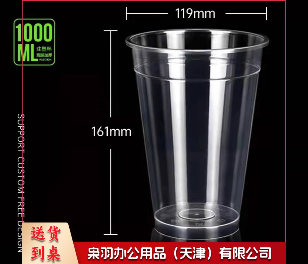 一次性1000ml塑料奶茶杯子 1升水果茶霸王杯 100个 不带盖 货号:WY