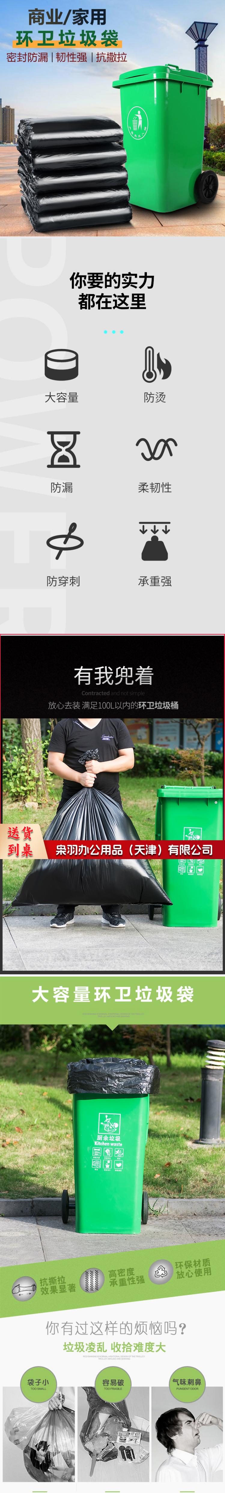 平口垃圾袋 加厚环保分类清洁袋子 120cm*140cm垃圾袋(50只)