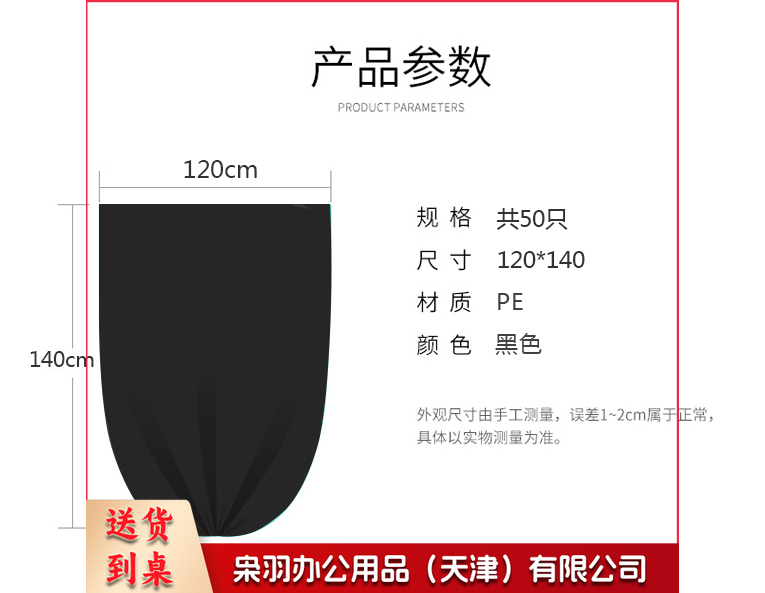平口120cmx140cm 黑色加厚垃圾袋50个/包