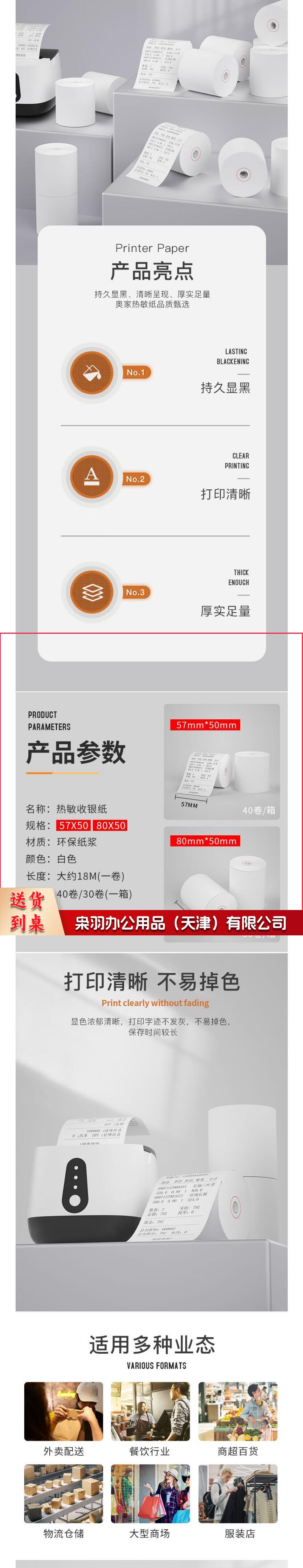 热敏纸 无管芯收银纸57*50mm 8卷/包 单位:包 货号:GD