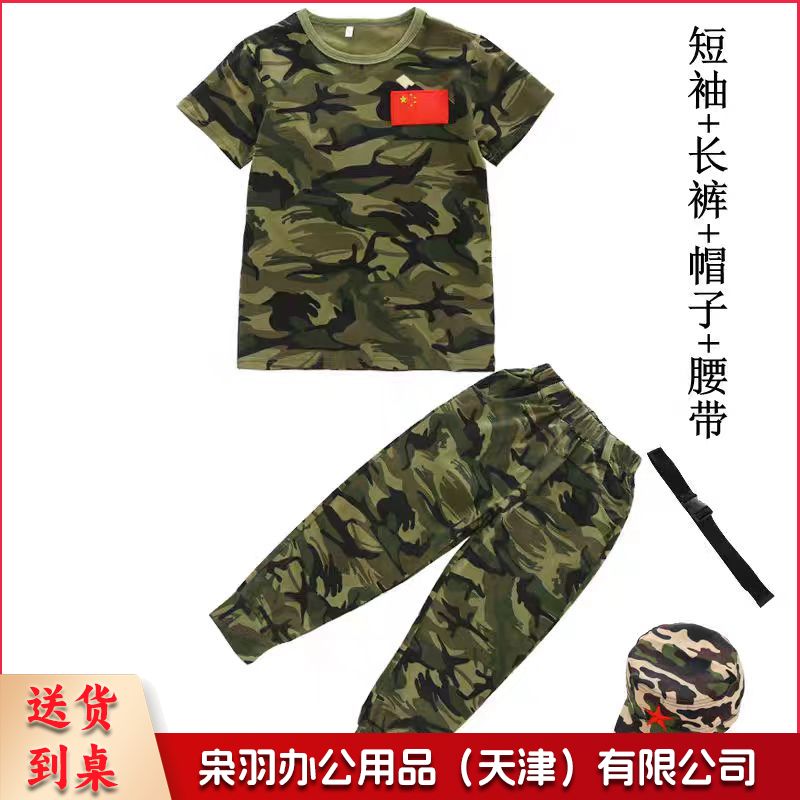 儿童迷彩服套装短袖T恤小学生幼儿园演出服研学夏令营服装军训服套装+帽子+腰带