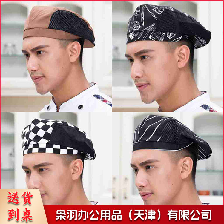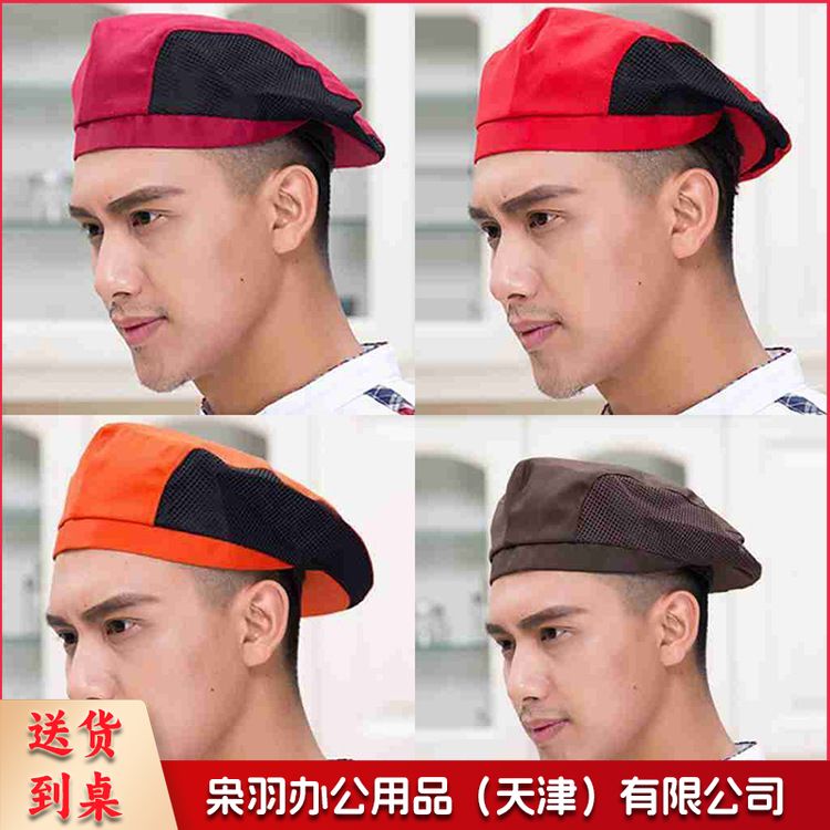 厨师帽子男女夏季透气服务员贝雷帽餐饮餐厅厨房工作帽可定制