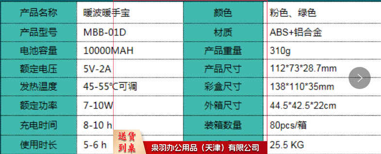 劲飞暖波暖手宝 充电宝10000mAh 2A快充 MBB-01D