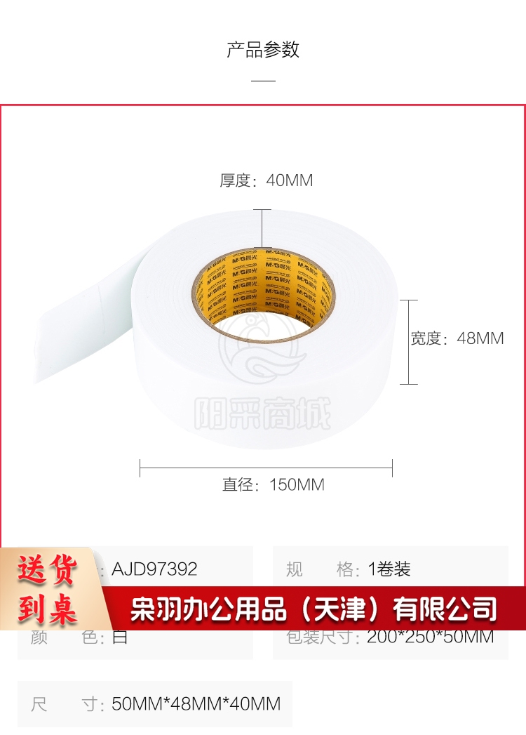 双面布基胶带胶带强力高粘度泡棉胶泡沫胶带款10cm 长30米