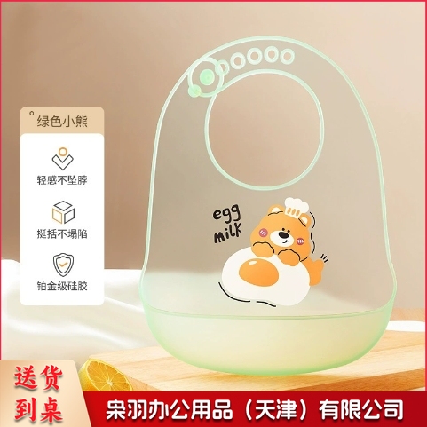 宝宝吃饭围兜防水硅胶饭兜儿童柔软喂辅食围嘴婴儿防脏喂饭口水兜(黄色-小狮子)