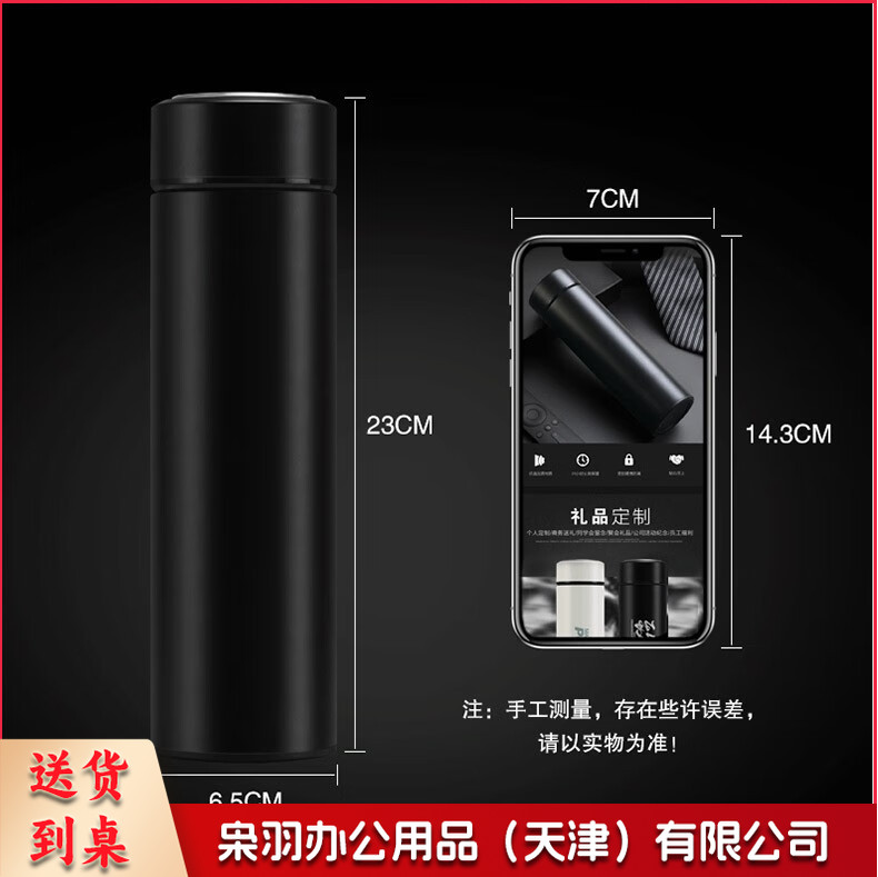 双层真空保温杯 304不锈钢 500ml 商务【黑色】 (可定制,请与客服沟通)