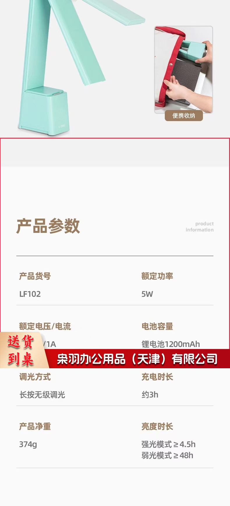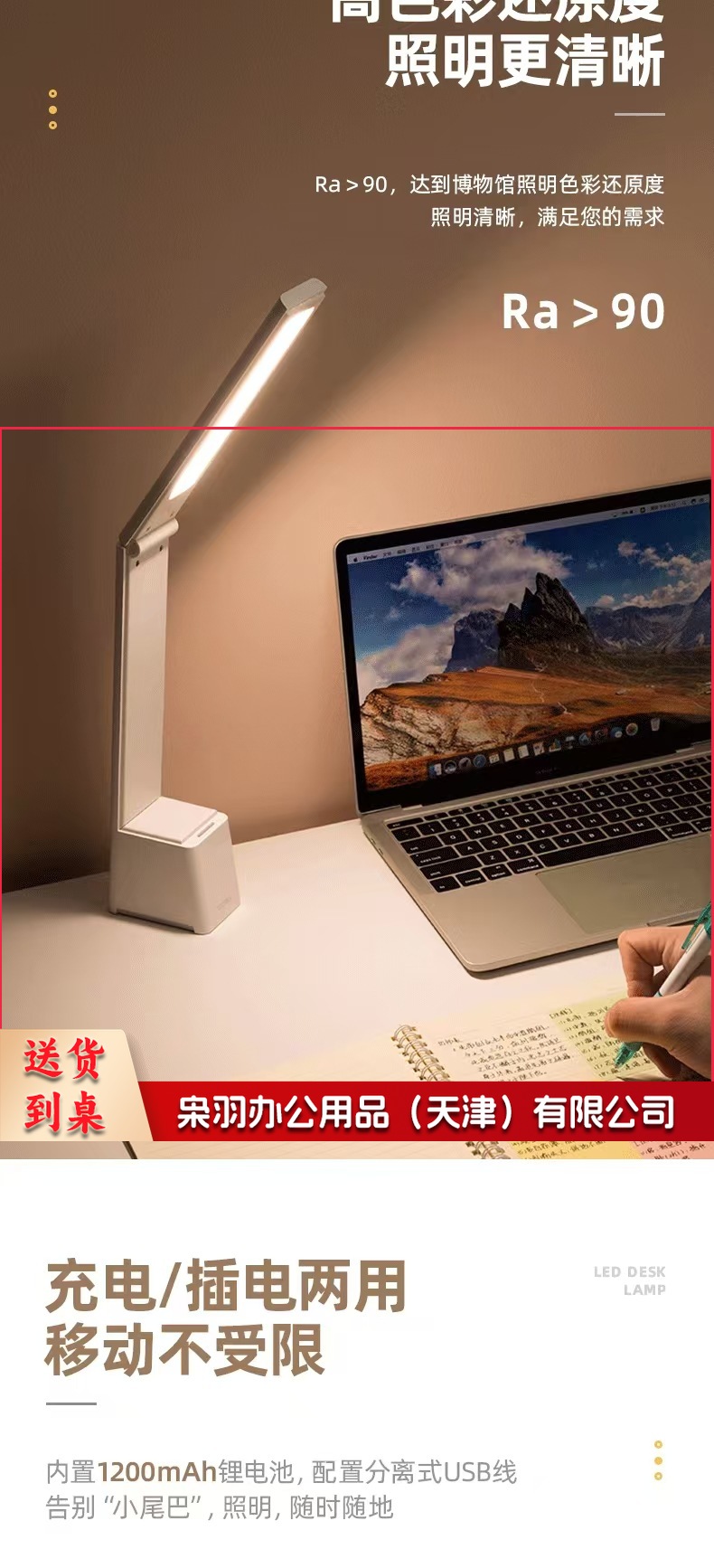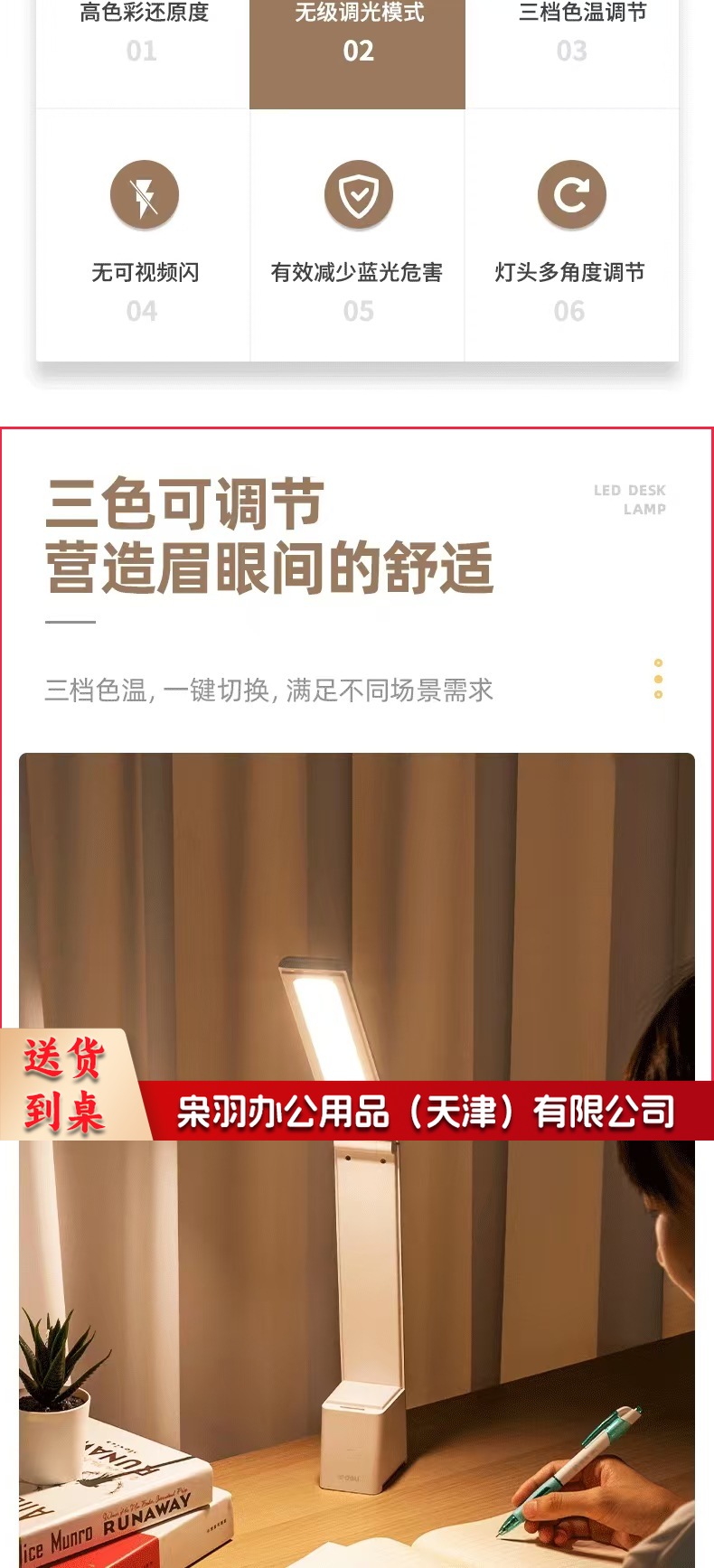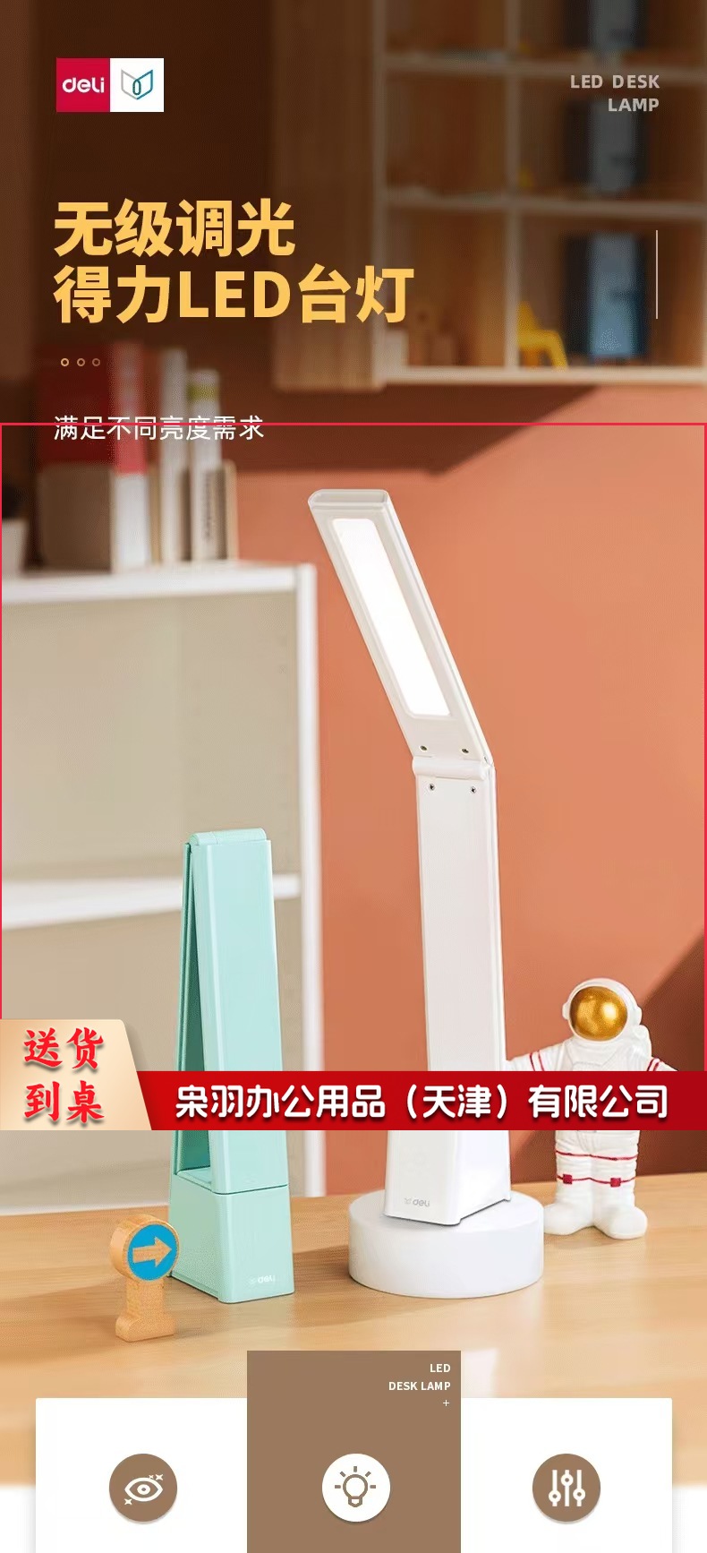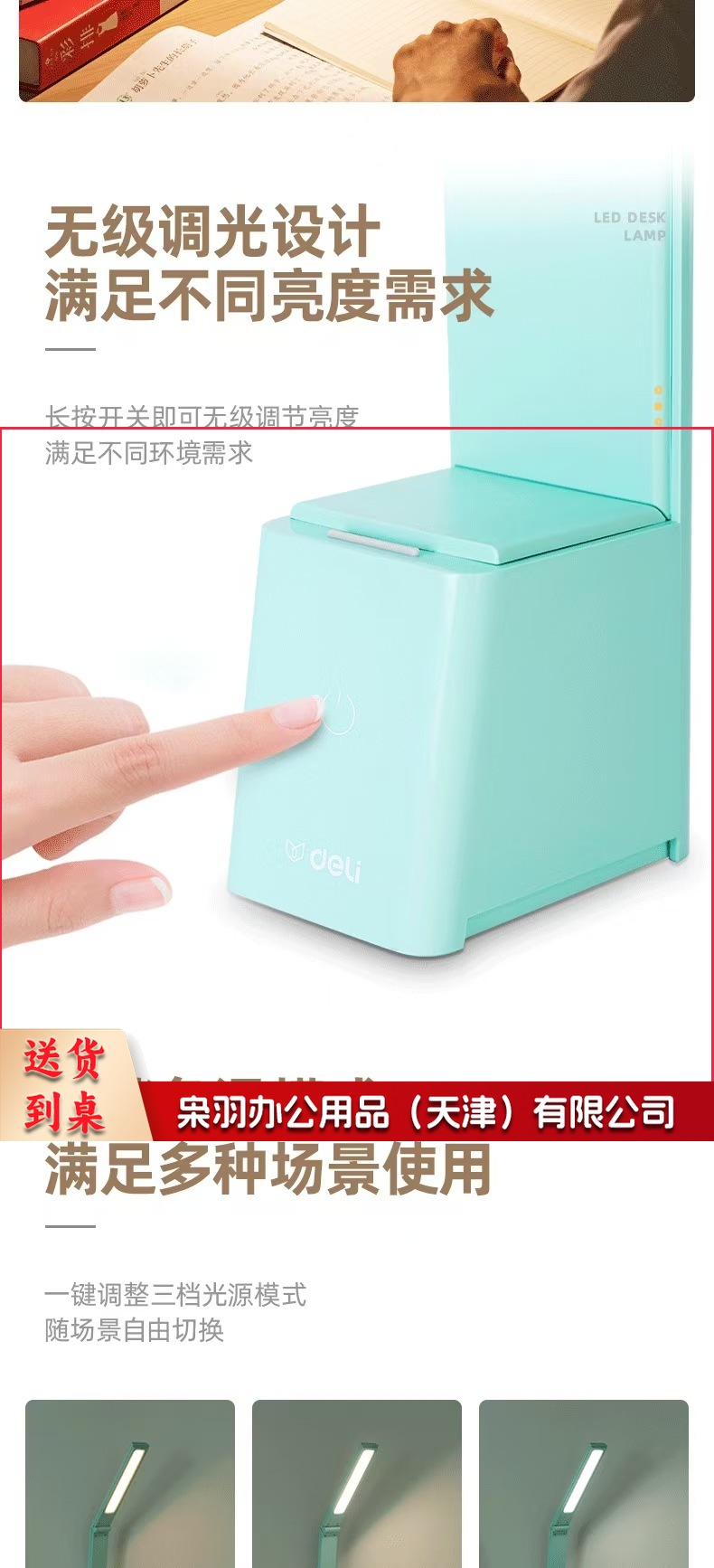 得力LF201_LED台灯(灰色)(1台装/盒)台灯学生阅读学习灯调光床头灯简约时尚书房灯LED可充电