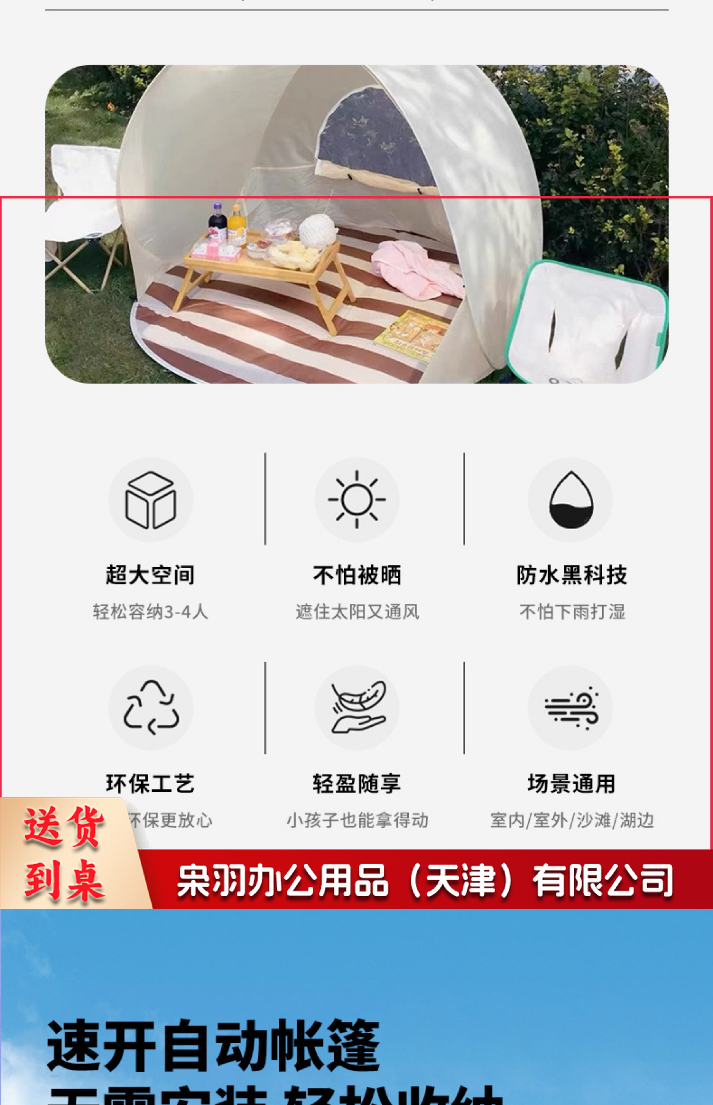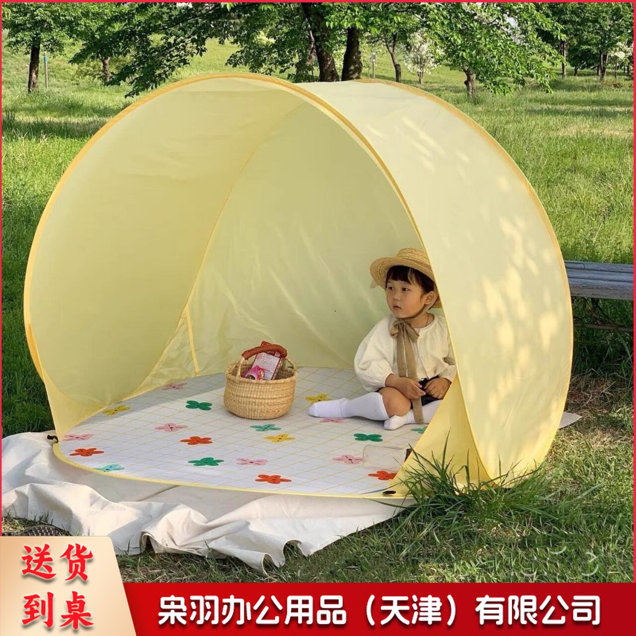 屋露营帐篷装备沙滩户外游戏一键春游折叠开合儿童防雨便携式防晒(浅黄色146cm*146cm*110cm)