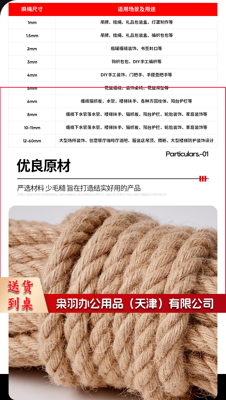 黄麻绳源头工厂黄色细麻绳捆绑绳猫爬架diy材料绳子手工编织麻绳(直径5mm50米)